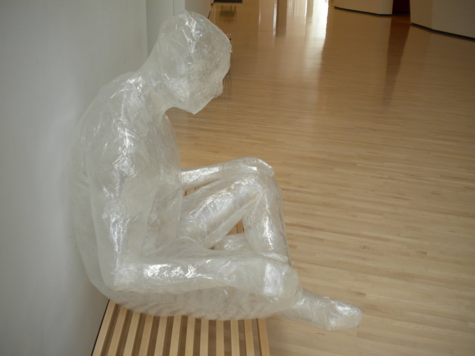 Here we see, once again, the merging of human and nonhuman; men's faces erupting from an otherwise functional object. This sculpture was from the contemporary gallery, where the theme of human/nonhuman was everywhere to be seen. I also really liked these two figures, sitting quietly at different points in the museum: